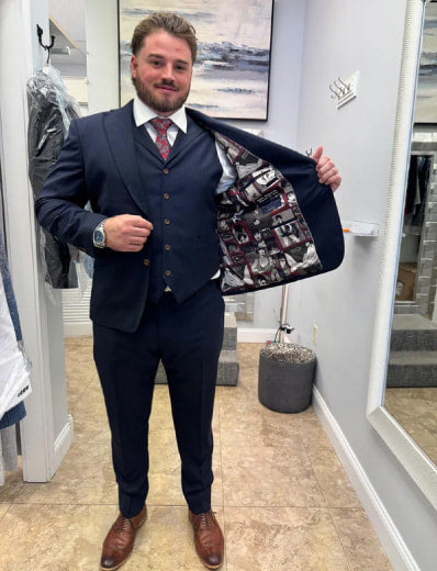 At Carmel Tailoring & Fine Clothier, each custom suit is hand-crafted by master clothiers who blend traditional tailoring with modern precision. From your first fitting to the final button, every element is engineered to match your posture, proportions, and personal style.