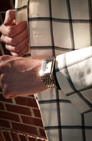 Chic ivory and black windowpane check jacket with a luxe blend of wool, linen & silk. Lightweight and stylish with the perfect balance of structure and ease — ideal for seasonal transitions.