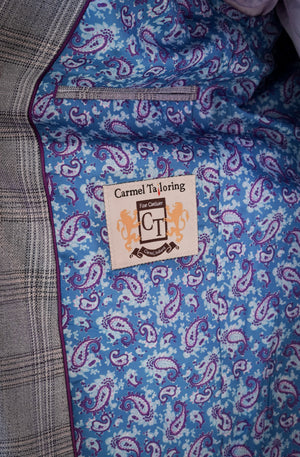 Crafted from an eco-friendly blend of bamboo, wool, linen & silk, this powder blue check jacket offers supreme breathability and luxurious comfort. Ideal for spring/summer styling with a soft touch and sustainable edge.