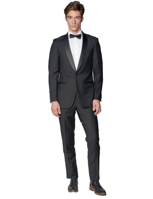 Black Shawl Lapel 1 Button Wool Tuxedo