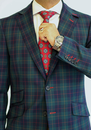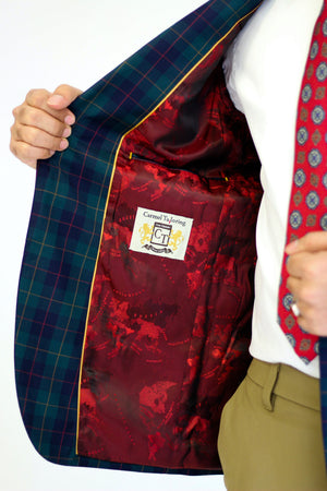 The Signature Green jacket with navy checks adds a bold twist to traditional styling. Eye-catching yet classic, this jacket fits right into creative workspaces or evening gatherings.