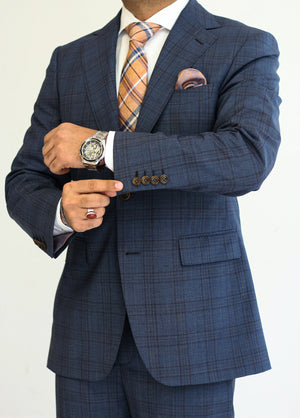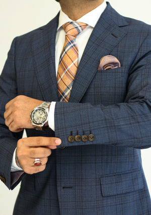 Elevate your wardrobe with a custom made-to-order suit designed to combine precision tailoring, exceptional comfort, and timeless style. The model shown is wearing size 40 as a reference for structure and fit.