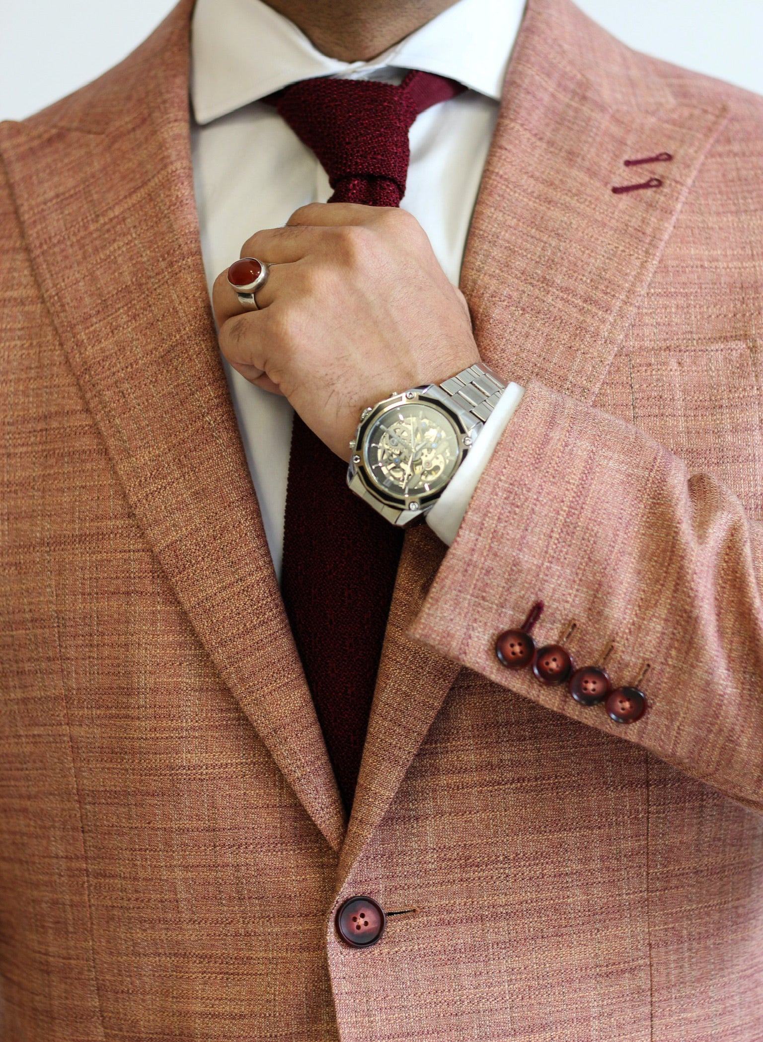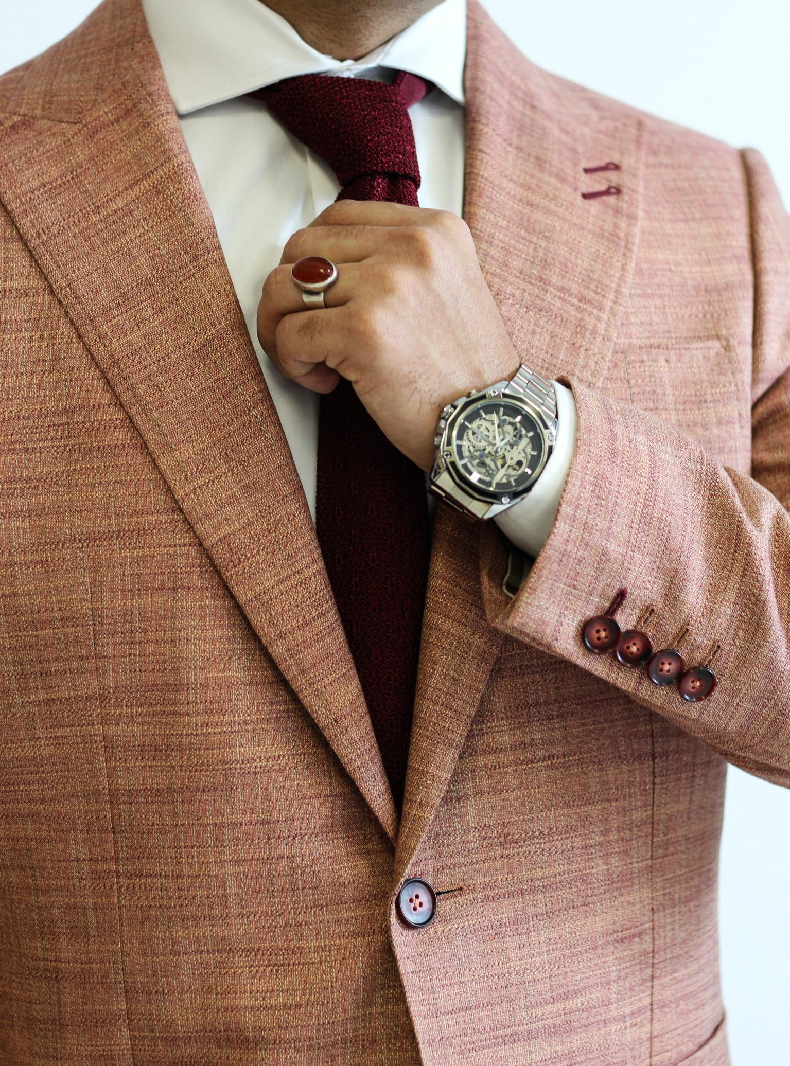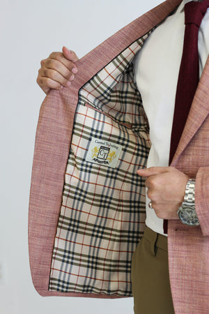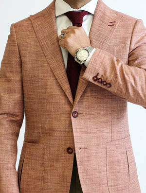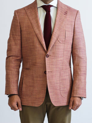 A vibrant salmon bamboo jacket that's both sustainable and stylish. Lightweight and perfect for spring and summer soirees.