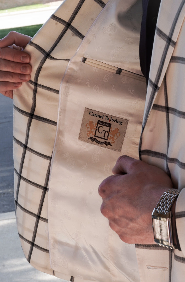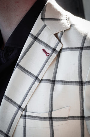 Chic ivory and black windowpane check jacket with a luxe blend of wool, linen & silk. Lightweight and stylish with the perfect balance of structure and ease — ideal for seasonal transitions.